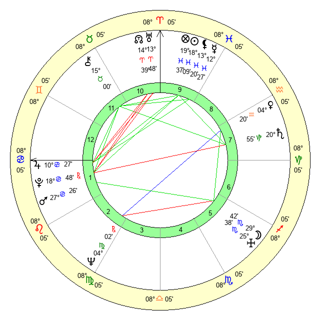 | Moon | 29 Scorpio 40 | 26 Cancer 47 | 27 Aries 25 |