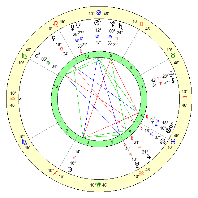| Neptune | 27 Cancer 22 | 2 Aries 10 | 0 Leo 26 |