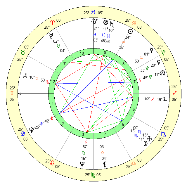 | Moon | 11 Scorpio 9 | 17 Virgo 22 | 12 Aquarius 17 |