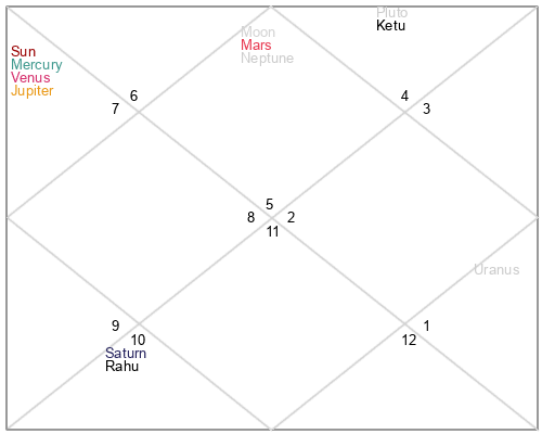| Rahu | 5 Aquarius 26 | 15 Pisces 21 | 0 Aquarius 37 |