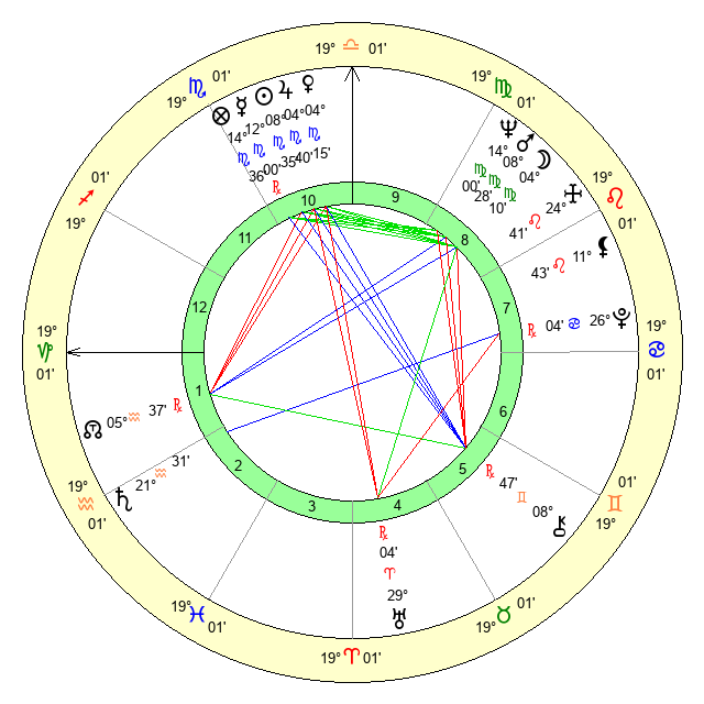 | Moon | 4 Virgo 10 | 16 Pisces 41 | 29 Sagittarius 36 |