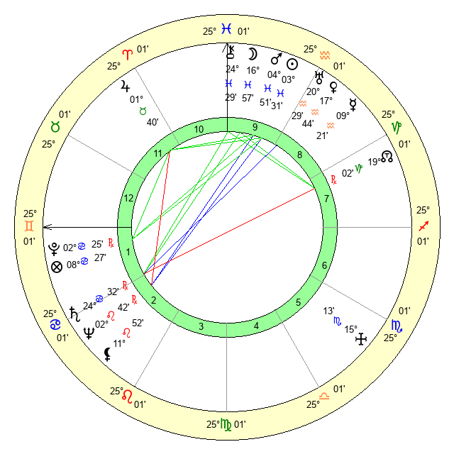 | Moon | 17 Pisces 1 | 26 Sagittarius 33 | 28 Aquarius 21 |