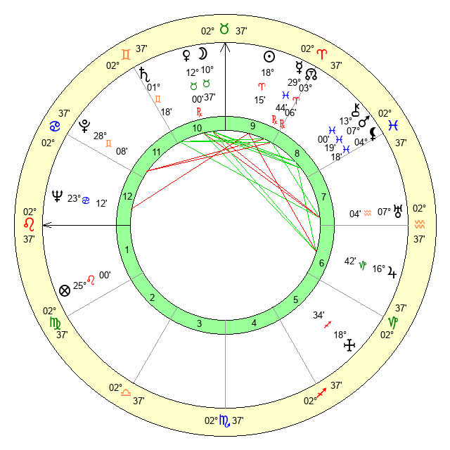 | Venus | 12 Taurus 0 | 25 Pisces 1 | 22 Gemini 4 |