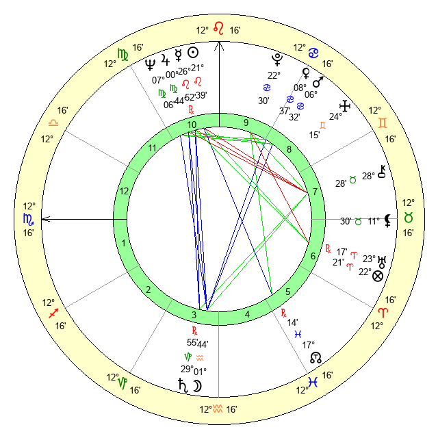 | Mercury | 26 Leo 52 | 4 Leo 55 | 15 Sagittarius 34 |