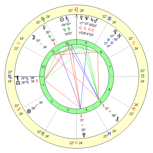 | Saturn | 2 Virgo 41 | 0 Aries 7 | 12 Virgo 17 |