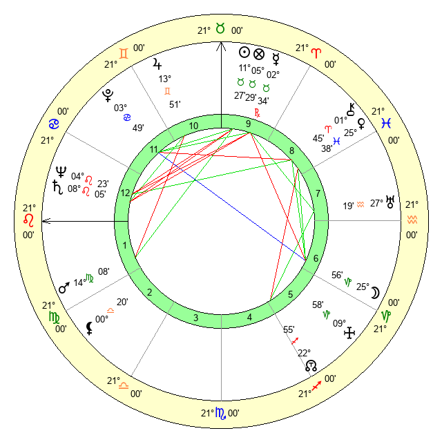 | Mars | 14 Virgo 8 | 6 Leo 23 | 0 Scorpio 19 |