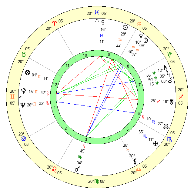 | Neptune | 26 Gemini 32 | 28 Pisces 29 | 28 Gemini 59 |