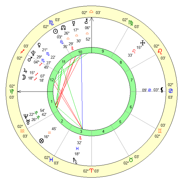 Moon | 18 Sagittarius 7 | 10 Virgo 6 | 12 Capricorn 23 |