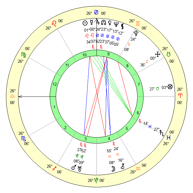 | Venus | 17 Cancer 38 | 23 Gemini 43 | 14 Sagittarius 16 |