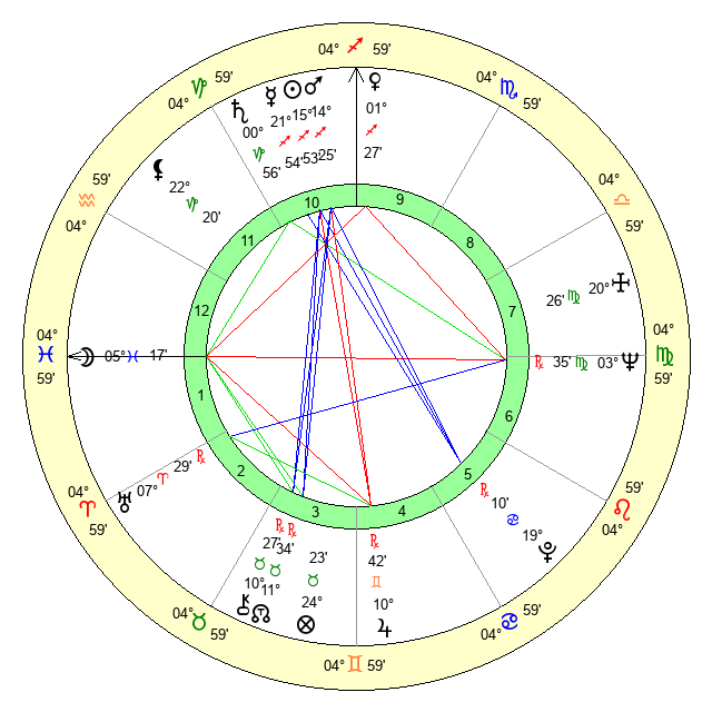 | Moon | 5 Pisces 19 | 4 Leo 41 | 18 Virgo 41 |