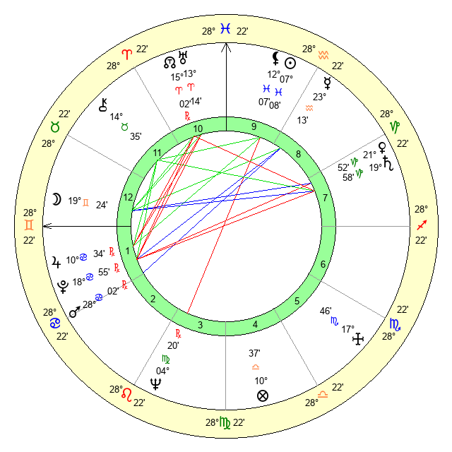| Moon | 19 Gemini 23 | 20 Aquarius 31 | 10 Sagittarius 34 |