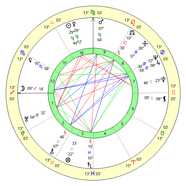 | Sun | 29 Virgo 45 | 0 Libra 55 | 29 Capricorn 31 |