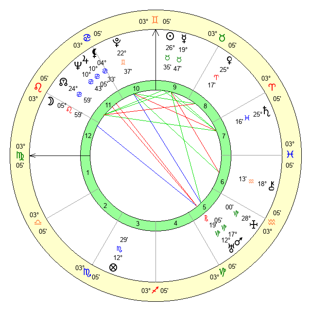 | Moon | 5 Leo 53 | 6 Aquarius 4 | 1 Sagittarius 2 |