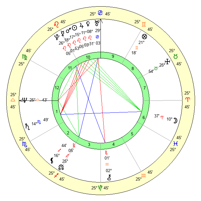 | Venus | 8 Leo 32 | 9 Cancer 36 | 5 Scorpio 29 |