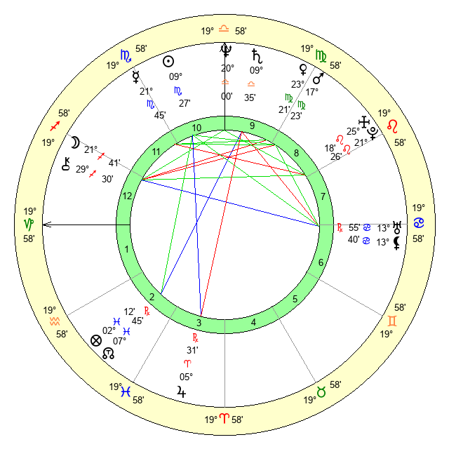 | Neptune | 20 Libra 1 | 29 Pisces 44 | 21 Libra 41 |