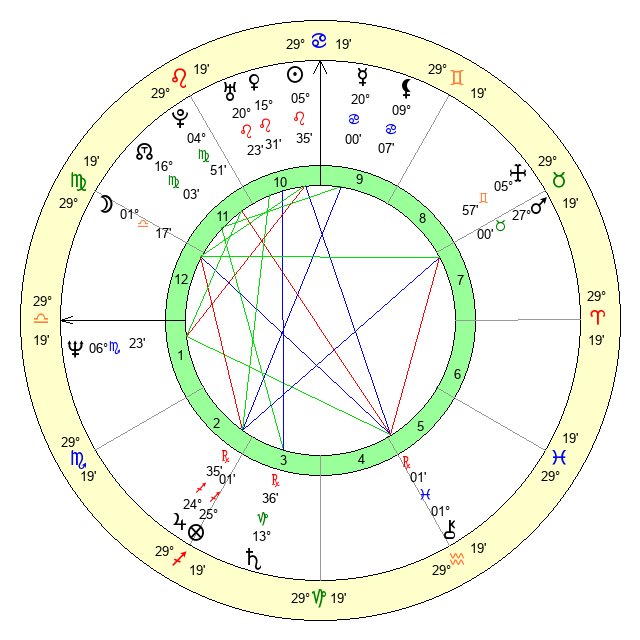 | Mars | 27 Taurus 0 | 24 Virgo 17 | 5 Cancer 11 |