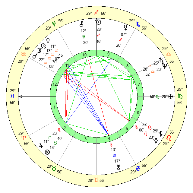 | Saturn | 25 Libra 57 | 25 Pisces 31 | 27 Libra 14 |