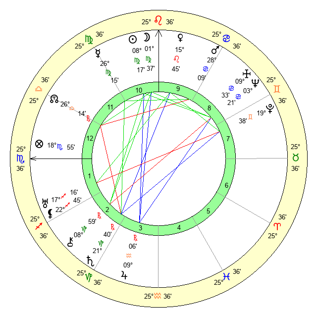 | Moon | 1 Virgo 32 | 25 Sagittarius 29 | 22 Aquarius 53 |