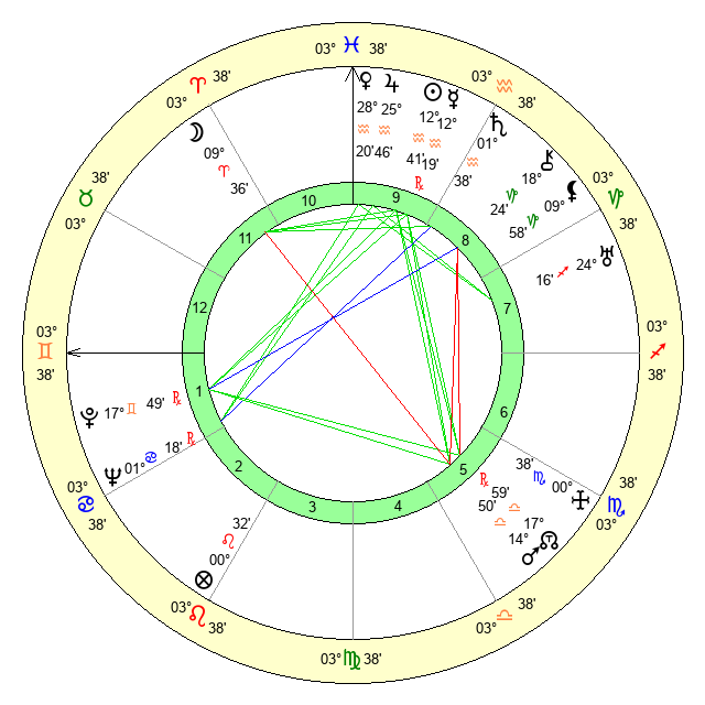 | Jupiter | 25 Aquarius 31 | 11 Gemini 16 | 20 Pisces 36 |