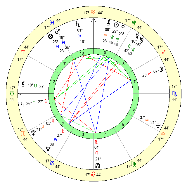 | Venus | 23 Capricorn 49 | 17 Pisces 38 | 21 Gemini 27 |