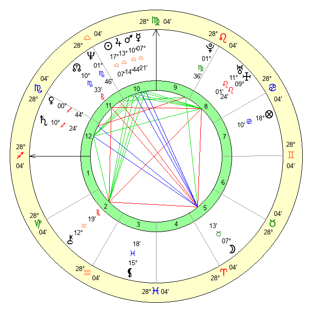 | Mars | 10 Libra 44 | 12 Scorpio 31 | 26 Scorpio 18 |
