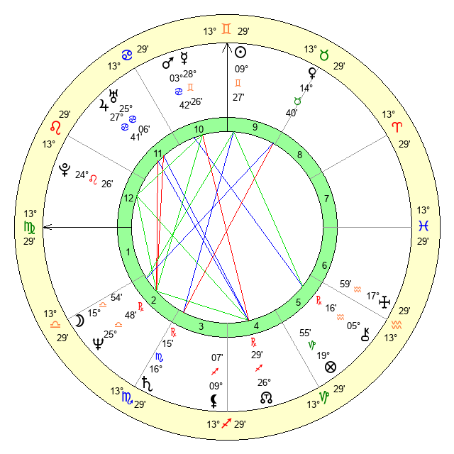 | Mercury | 28 Gemini 26 | 12 Gemini 24 | 20 Leo 37 |