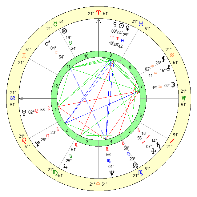 | Mars | 4 Gemini 54 | 21 Cancer 40 | 17 Cancer 35 |