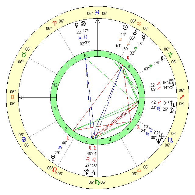 | Saturn | 2 Sagittarius 9 | 17 Pisces 46 | 2 Sagittarius 27 |