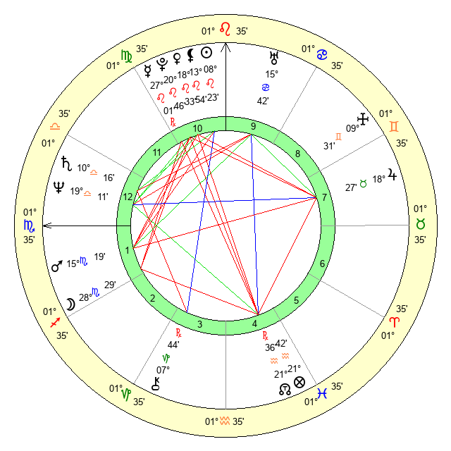 | Moon | 28 Scorpio 23 | 29 Libra 51 | 10 Leo 0 |