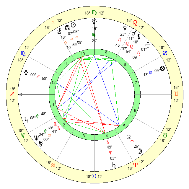 Venus | 23 Leo 46 | 11 Virgo 15 | 27 Virgo 51 |