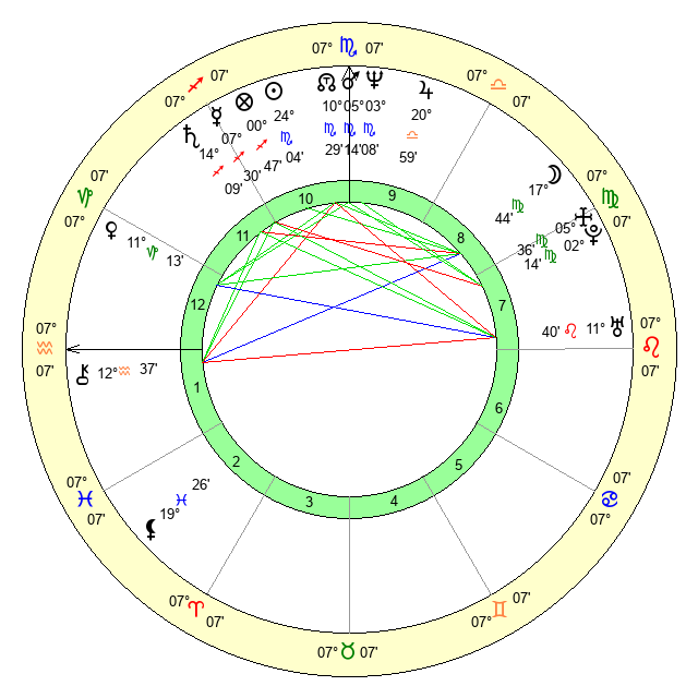 | Moon | 17 Virgo 44 | 15 Libra 38 | 15 Pisces 39 |