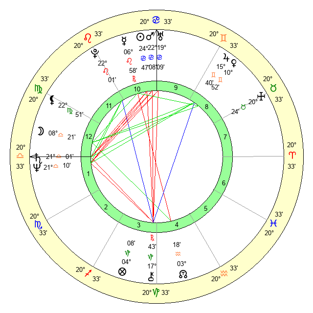 | Mars | 22 Cancer 9 | 17 Virgo 37 | 8 Virgo 11 |