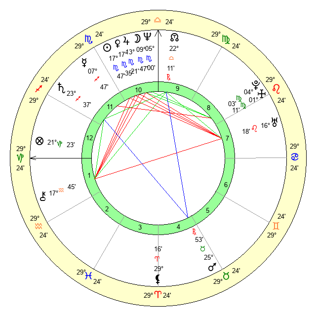 | Moon | 9 Scorpio 49 | 29 Cancer 33 | 23 Aries 49 |