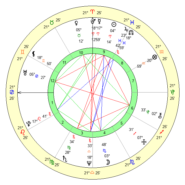| Mars | 18 Aries 13 | 21 Cancer 40 | 11 Gemini 59 |