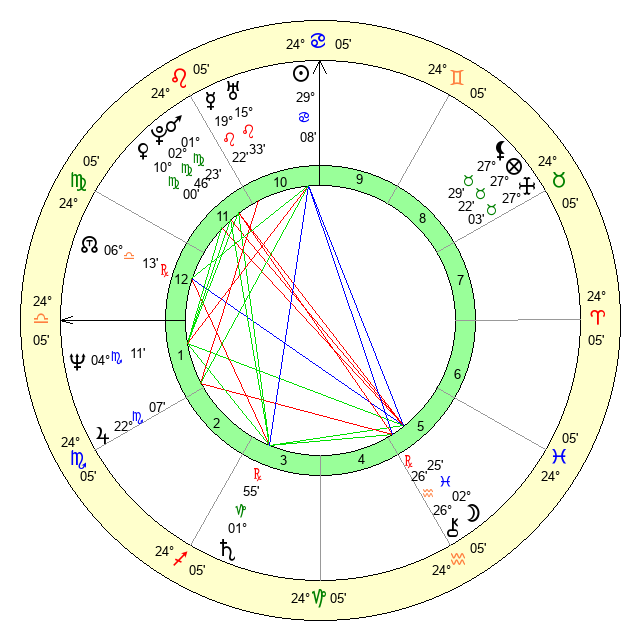 | Sun | 29 Cancer 8 | 0 Leo 8 | 2 Libra 51 |
