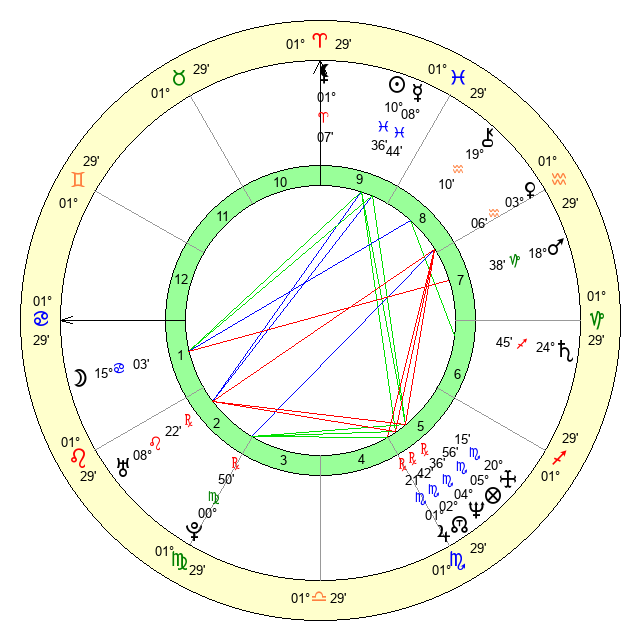 | Moon | 15 Cancer 4 | 4 Aries 18 | 12 Capricorn 18 |
