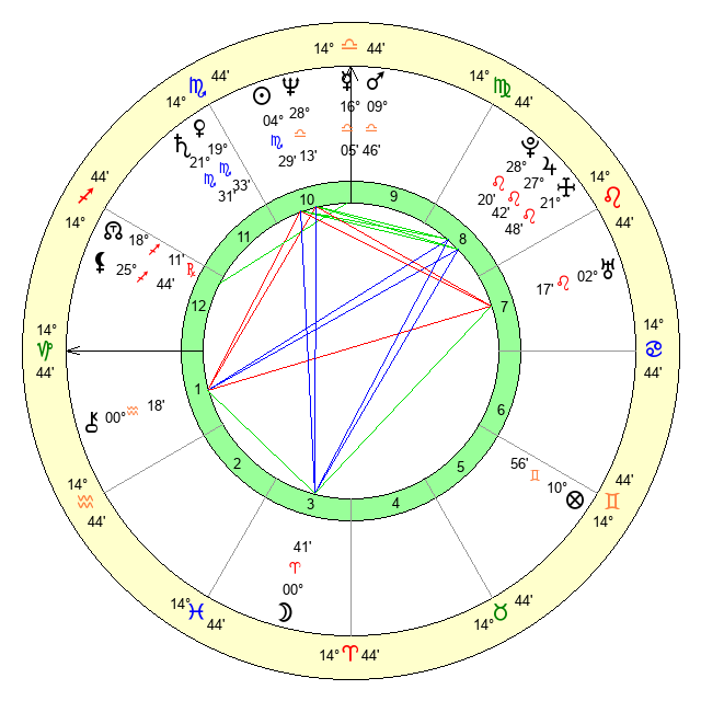 | Neptune | 28 Libra 13 | 29 Pisces 51 | 0 Scorpio 14 |