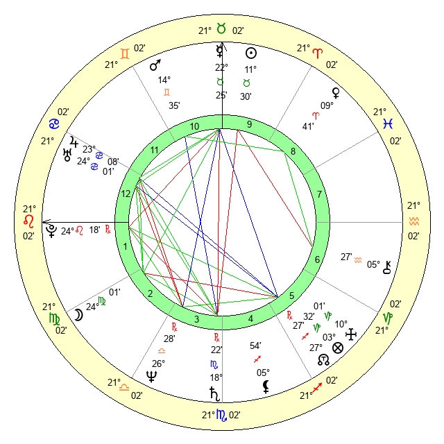 | Mars | 14 Gemini 35 | 6 Leo 23 | 0 Leo 12 |