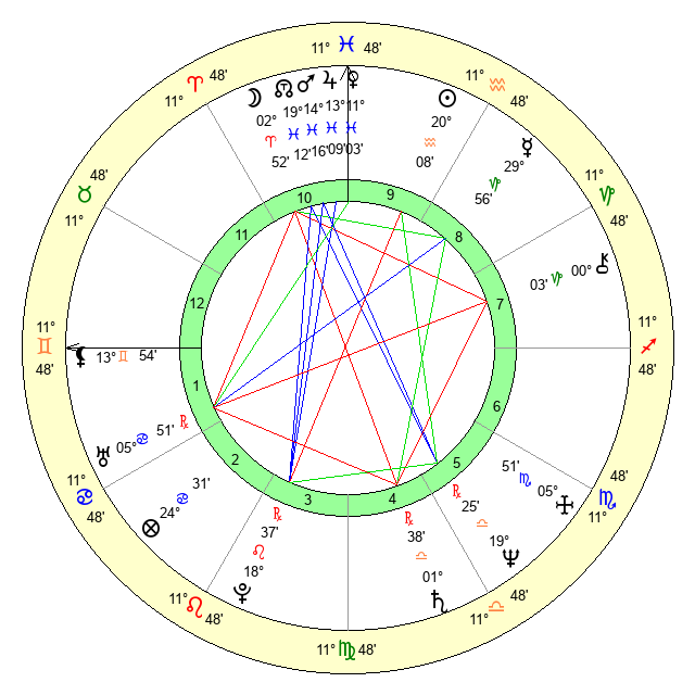 | Jupiter | 13 Pisces 2 | 11 Gemini 19 | 0 Aries 34 |