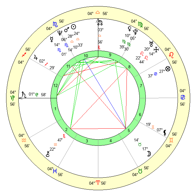 | Neptune | 6 Scorpio 14 | 0 Aries 4 | 8 Scorpio 29 |