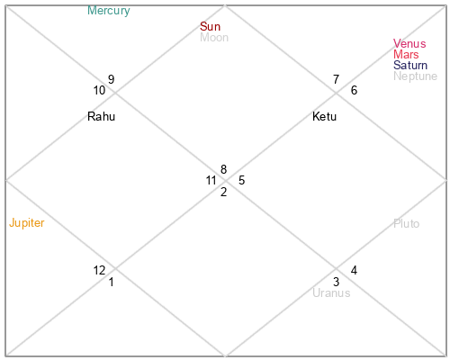 | Rahu | 5 Pisces 9 | 13 Pisces 52 | 1 Pisces 14 |
