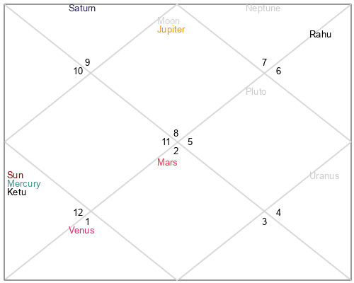 | Rahu | 13 Libra 27 | 26 Pisces 54 | 9 Libra 58 |