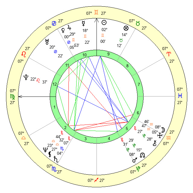 | Venus | 0 Cancer 6 | 17 Aries 14 | 23 Virgo 2 |