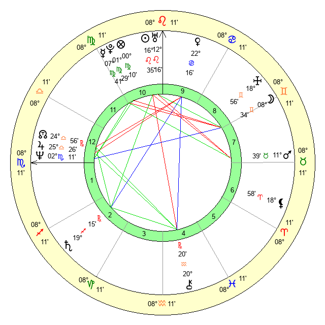 | Neptune | 2 Scorpio 11 | 1 Aries 50 | 4 Scorpio 2 |