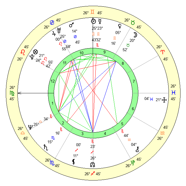 | Sun | 25 Gemini 43 | 26 Gemini 45 | 2 Virgo 40 |