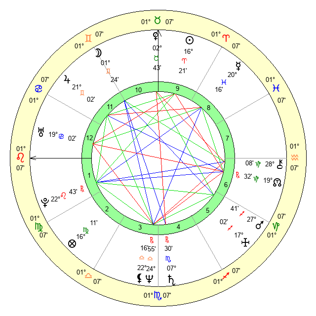 | Pluto | 22 Leo 42 | 3 Aquarius 38 | 22 Leo 57 |