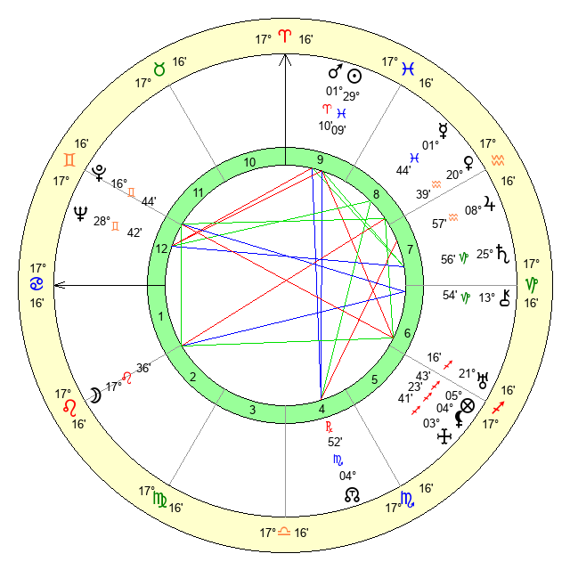 | Sun | 29 Pisces 9 | 0 Aries 20 | 27 Cancer 57 |