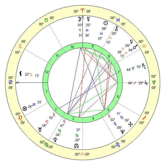 | Venus | 9 Aquarius 51 | 10 Aries 48 | 29 Aries 51 |