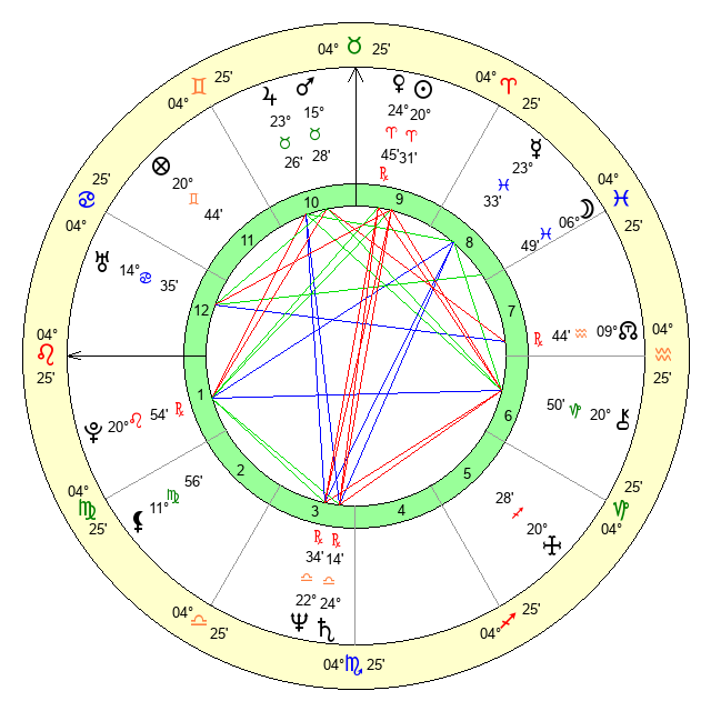 | Moon | 7 Pisces 0 | 25 Virgo 48 | 24 Libra 16 |