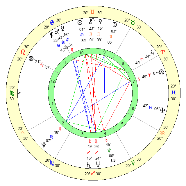 | Moon | 2 Gemini 57 | 8 Gemini 3 | 12 Libra 23 |